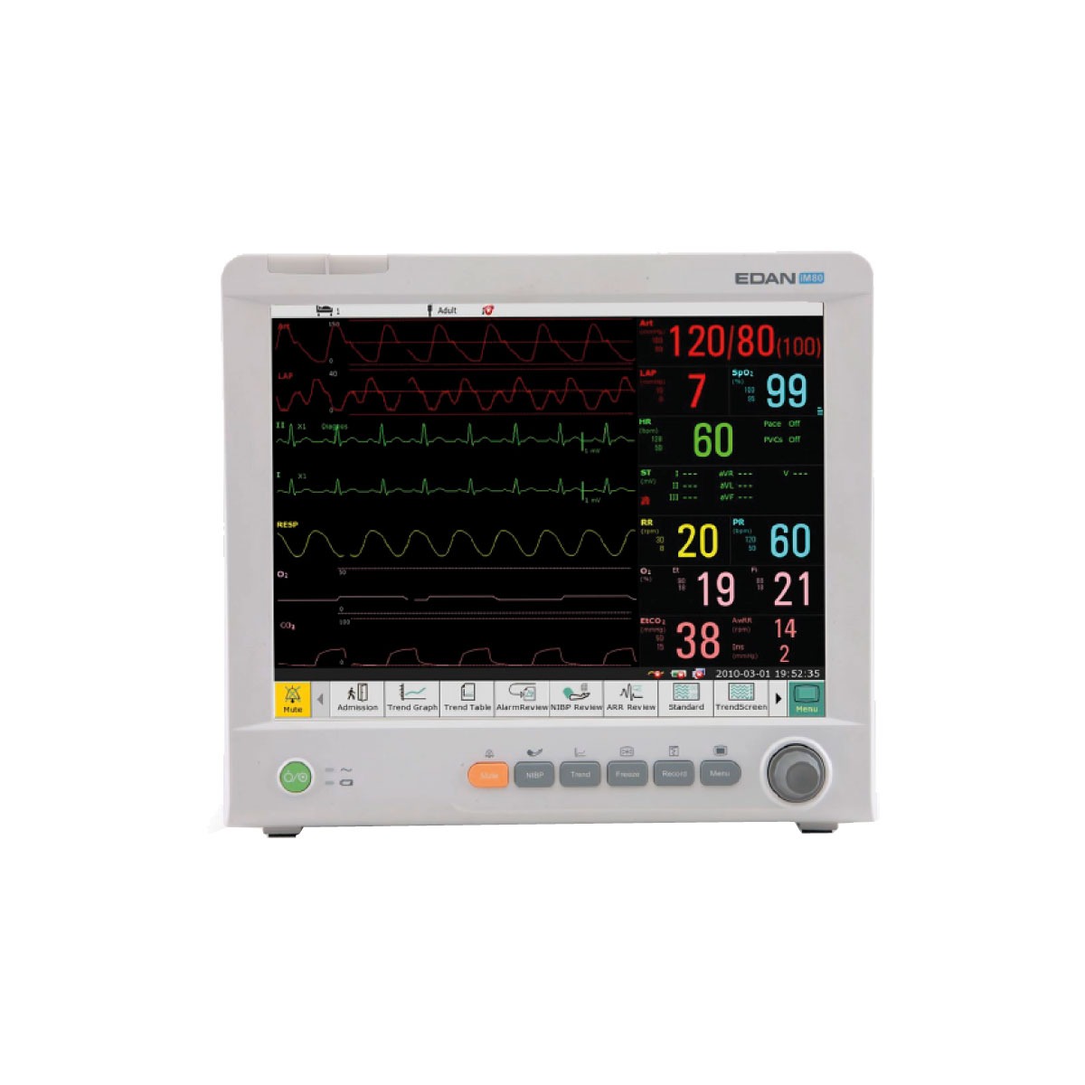 Monitor iM70, marca EDAN su pantalla táctil de 12.1″ permite una visión más grande para no perder detalle de los signos vitales del paciente. Monitor preconfigurado, con parámetros básicos ECG de 3 /5 derivaciones, RESP, SpO2, NIBP, 2-TEMP, dando la posibilidad de varias configuraciones de acuerdo a las necesidades del hospital.